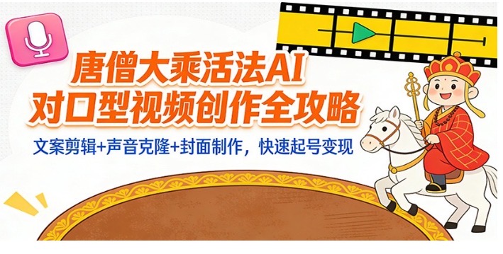 抖音 微视兴起赛道,“大乘活法”的实操教学,播放量百万,点赞量几十万,今天就来手把手教你如何操作,旨在系统教授如何利用AI工具制作对口型、声音克隆类视频内容。