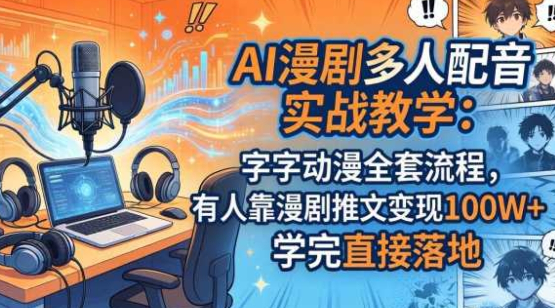 本课程全程案例式教学,从基础介绍、分镜设置、人物场景图生成、AI推理、视频生成与多人配音,到视频导出、剪辑优化全覆盖,配套素材、提示词与工具链接,零基础也能快速做出可变现的AI漫剧。